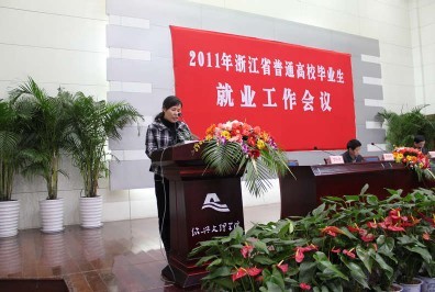 12月9日,2011年浙江省普通高校毕业生就业工作会议在绍兴文理学院举行,来自全省普通高校毕业生就业工作的分管领导、部门负责人近300人与会。省委教育工委副书记、教育厅副厅长蒋胜祥到会并讲话。我院院长助理蒋丽君教授代表学院在会上作题为《依托行业 创新机制 全力促进高校毕业生面向基层就业》的典型经验介绍。