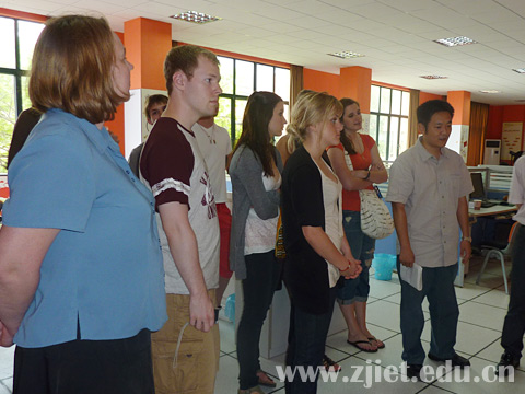 5月17日——6月6日,美国北达科他州峡谷城州立大学9名学生来我院“游学”。在我院期间,该批学生参观了学院的食品实验室、淘宝实验室、同声传译室、国际文化村,并与我院师生进行了座谈。