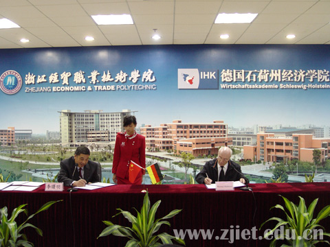 2007年10月30日,德国石荷州经济学院董事长Dr. Detlef Reeker与德国石荷州成教协会前副会长Prof. Werner Hutterer来我院访问。就我院企业管理专业(德语特色班)开展中德合作高等专科教育项目正式签署合作协议,并聘请Prof. Werner Hutterer为我院德语中心副主任。省供销社副主任瞿建,省教育厅领导,学院领导以及企业管理专业(德语特色班)首批21名学生参加了签约仪式。