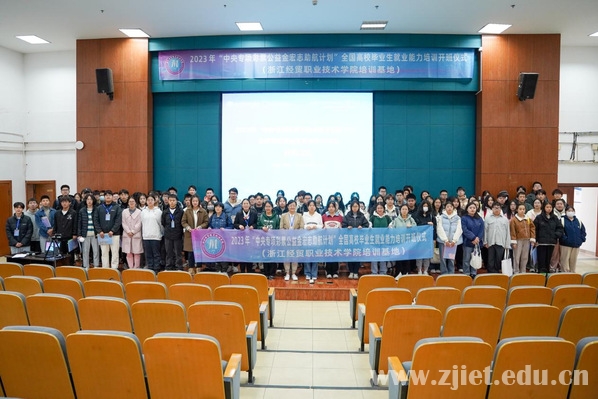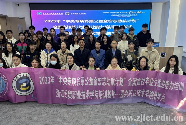 11月25日,我校在图书馆报告厅举行2023年“中央专项彩票公益金宏志助航计划”全国高校毕业生就业能力培训项目(以下简称“宏志助航计划”)开班仪式。学校今年成功获批全国高校毕业生就业能力培训基地,成为目前浙江省四个培训基地之一,也是省内唯一一所高职院校获此殊荣。开班仪式上,嘉兴职业技术学院作为本项目教学点,通过线上形式同步参会,两校招生就业处(创业学院)负责人、授课教师代表以及来自省内21所本专科院校的358名学员通过线上+线下方式参加活动。活动由招生就业处副处长、创业学院副院长付姝兰主持。